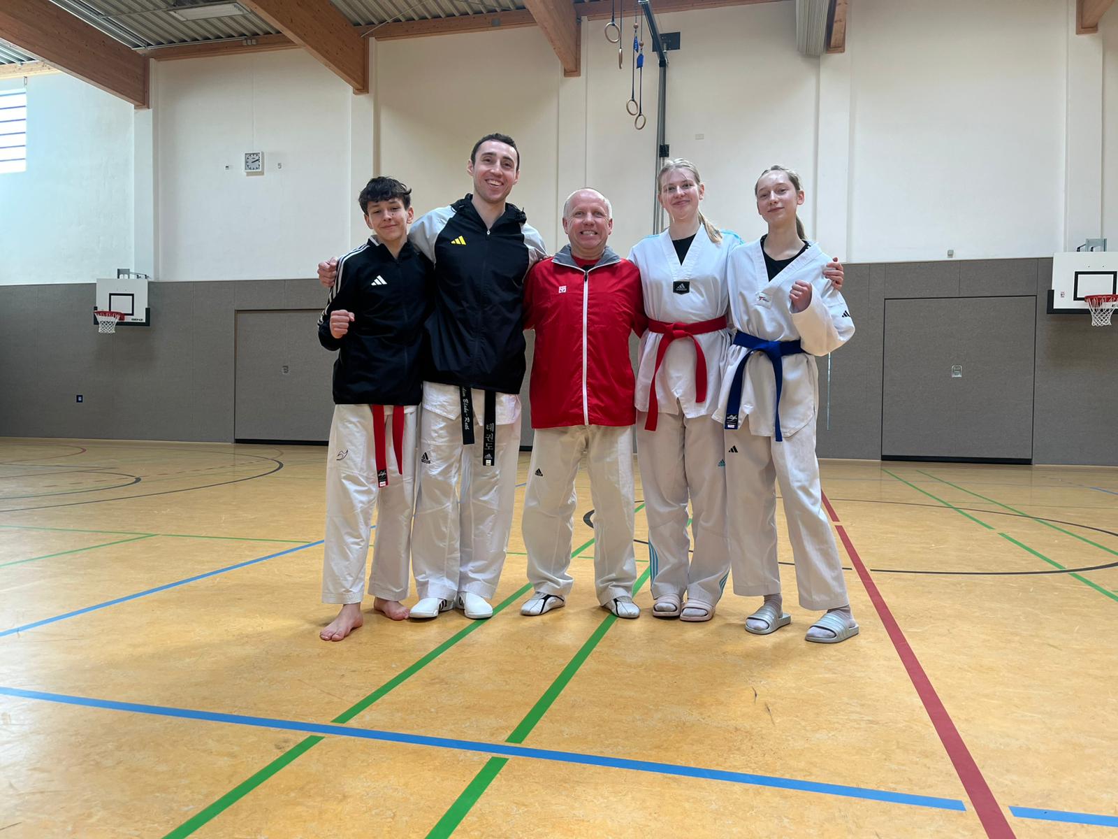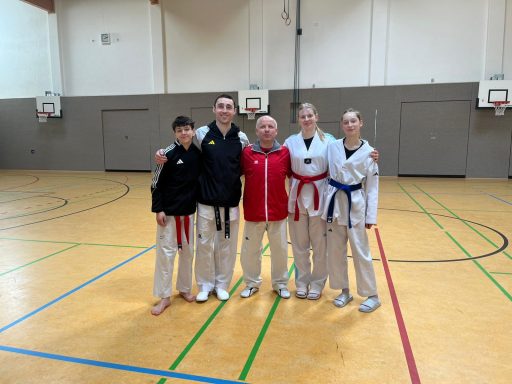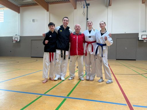 Auch wenn Anna, Marie und Tim noch nicht über den 1. Kup (roter Gürtel mit schwarzem Streifen) verfügen und direkt im Anschluss den 1. Dan (schwarzen Gürtel) machen würden, hatten die 3 bereits großes Interesse an dem Lehrgang und wollten jetzt schon mehr über die Prüfungsanforderungen erfahren und sich auf die einzelnen Prüfungsfächer in den Bereichen Technik, Zweikampf, Bruchtest, Selbstverteidigung sowie Theorie vorbereiten. Wir begrüßen ihren Einsatz sowie ihr Engagement und Interesse für den Sport sehr!